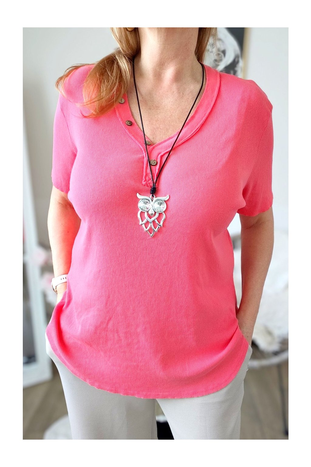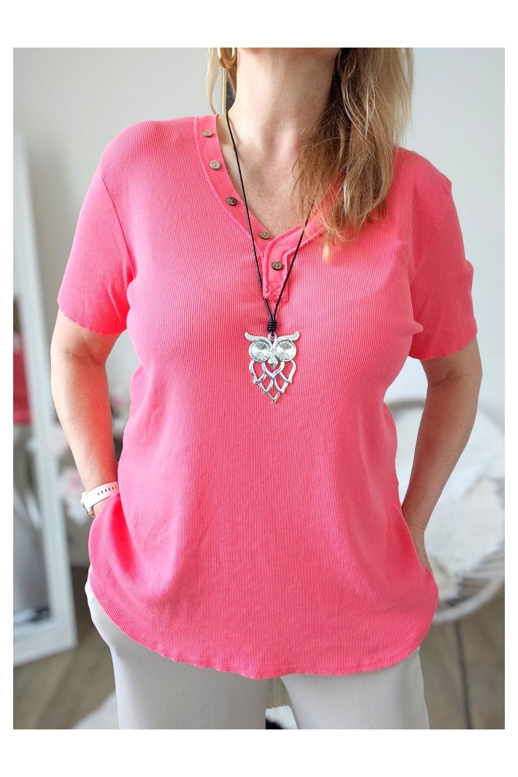 Dámské žebrované tričko s knoflíčky GRETA