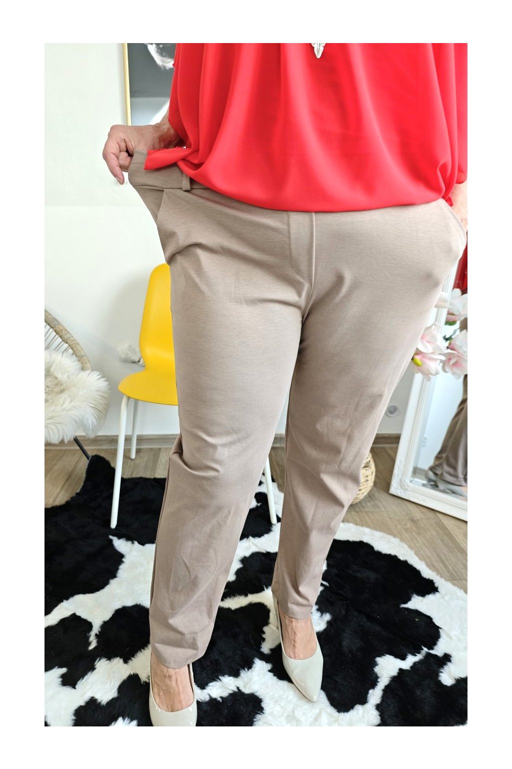 zúžené nohavice, které vypadají skvěle k lodičkám i teniskám.