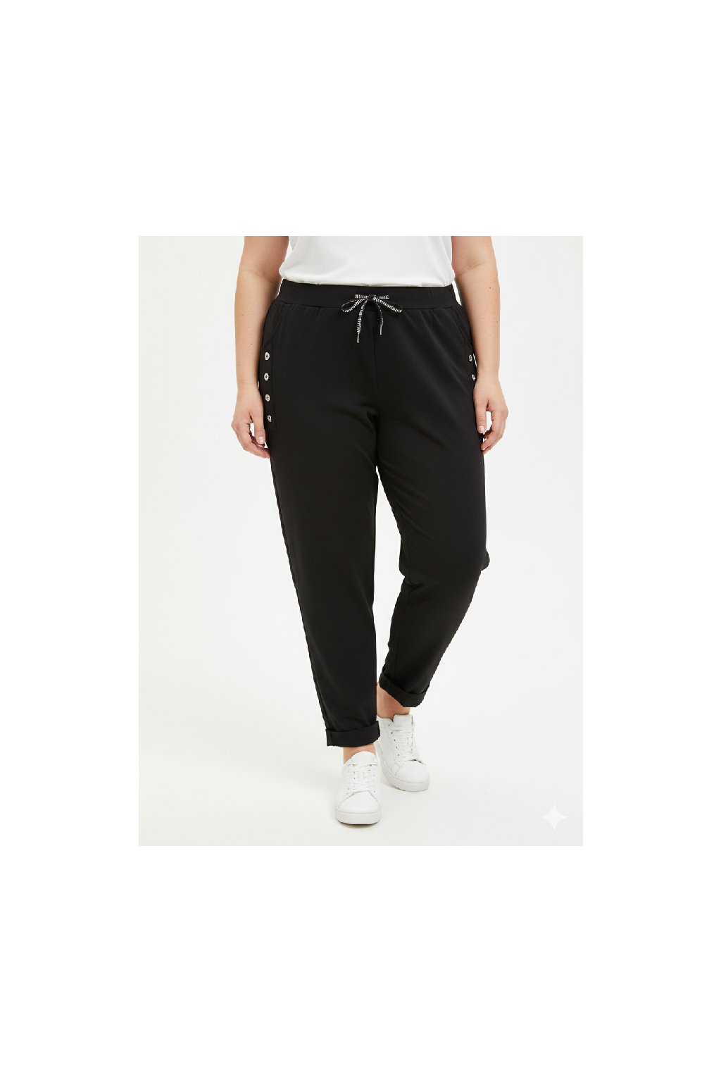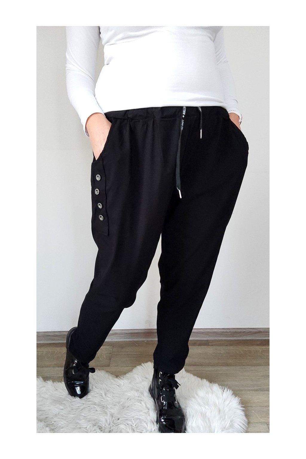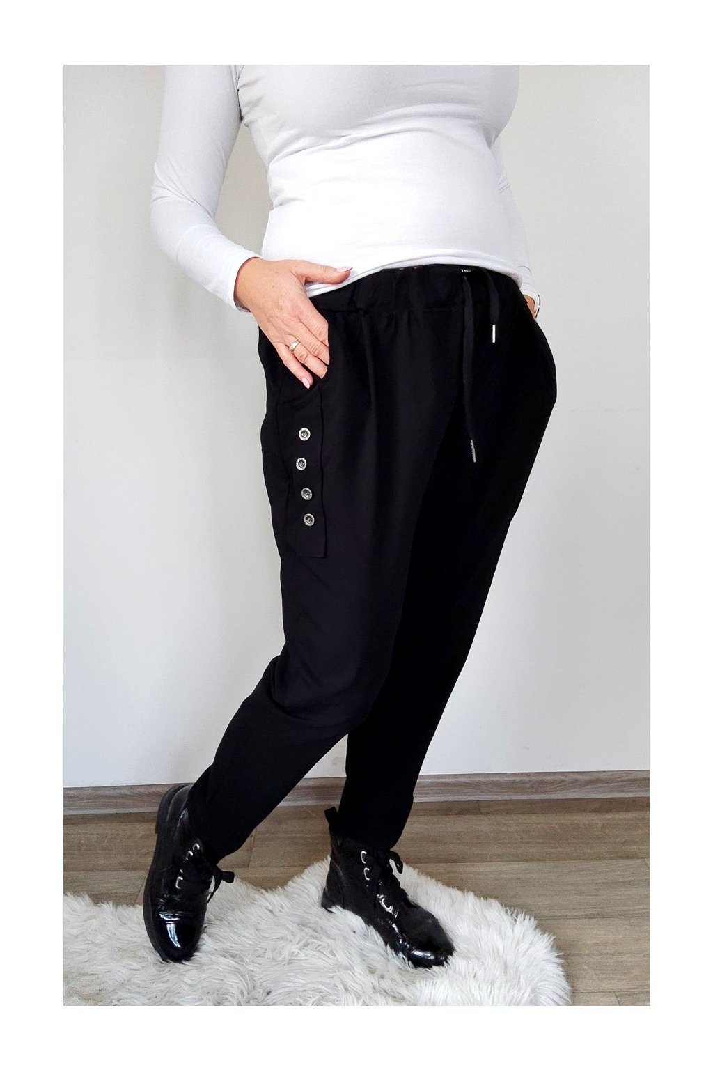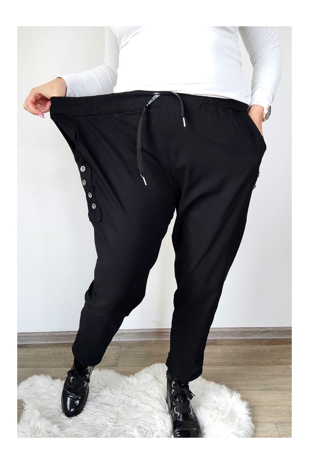 Ozdobné knoflíky, kapsy, v pase guma + šňůrka