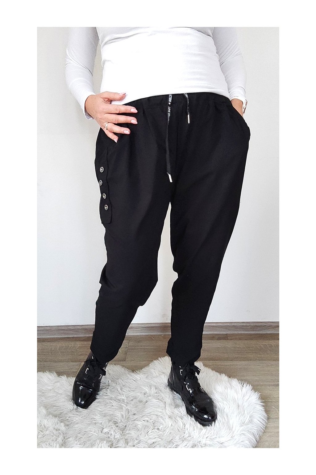 Ozdobné knoflíky, kapsy, v pase guma + šňůrka