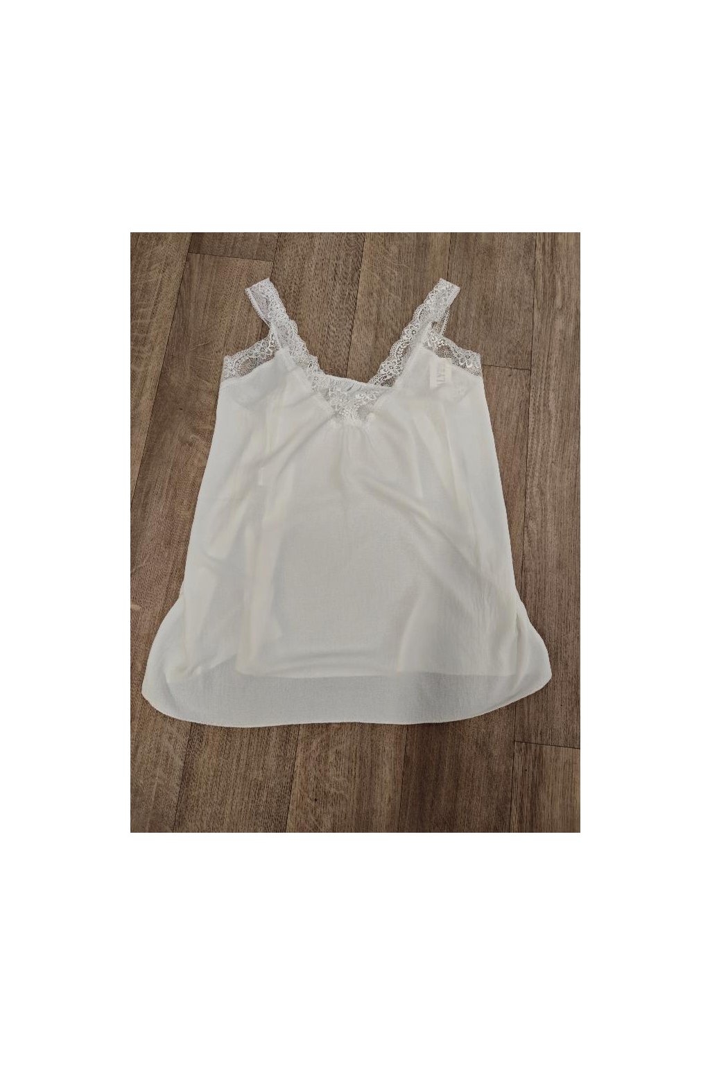Výstřih lemovaný krajkou dodává tílku romantický nádech a krásně