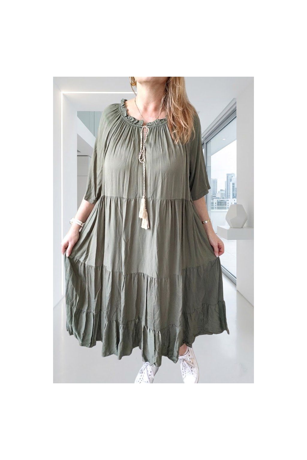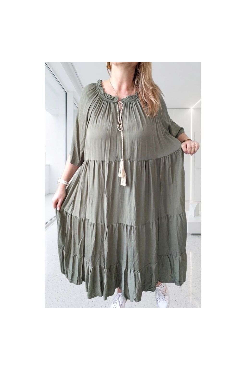 Dopřejte si pocit svobody a nekonečného pohodlí s našimi stupňovitými maxi šaty. Tento model je definicí ležérní elegance.