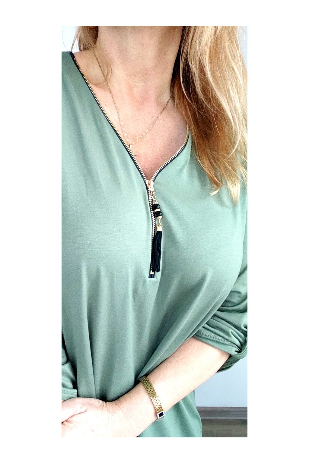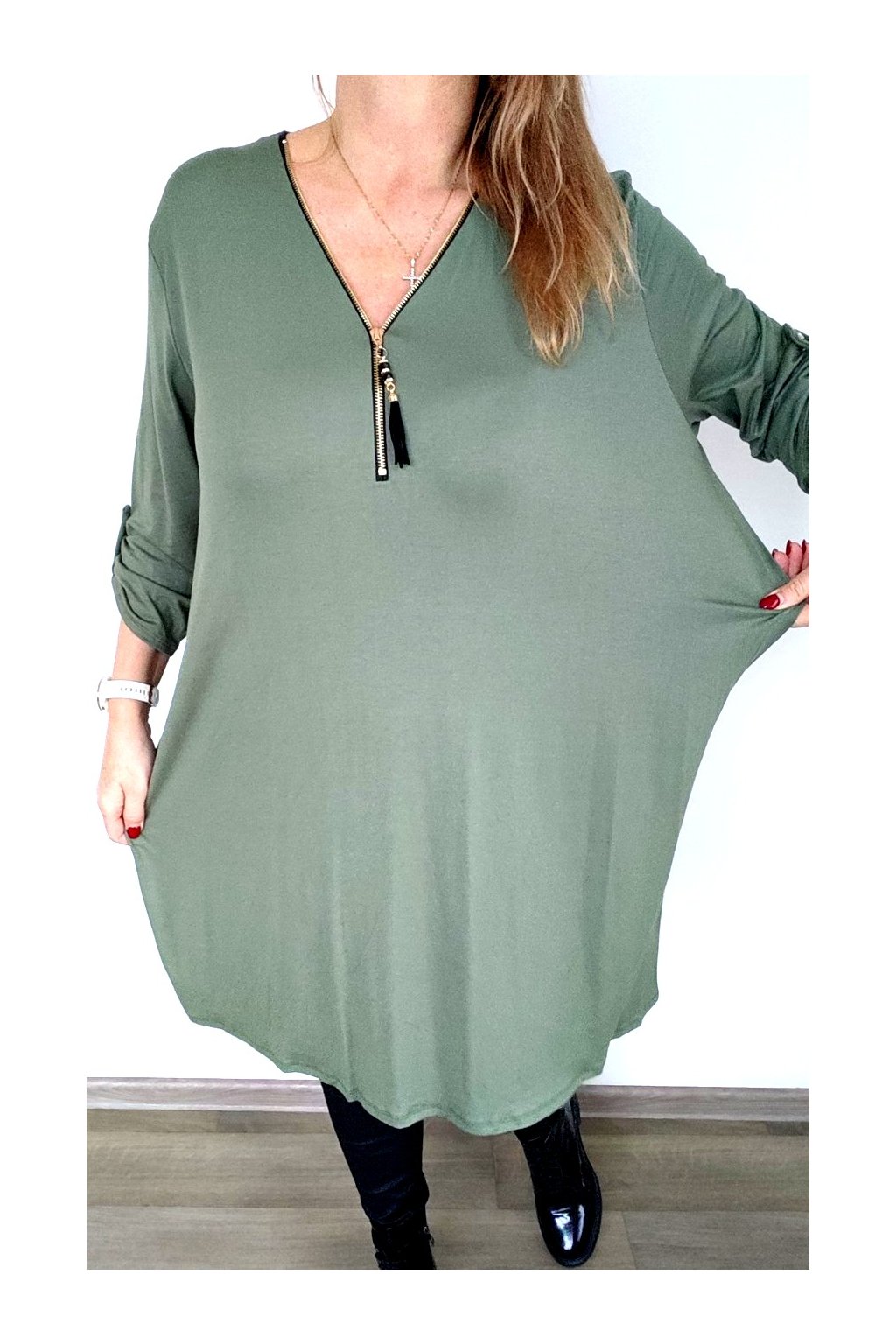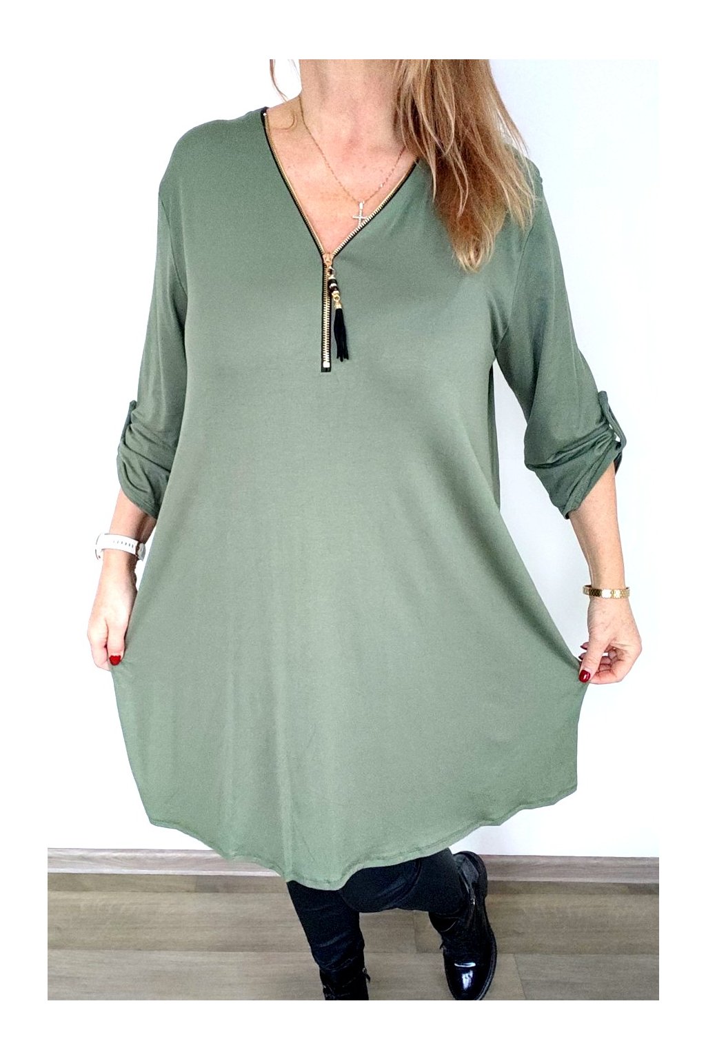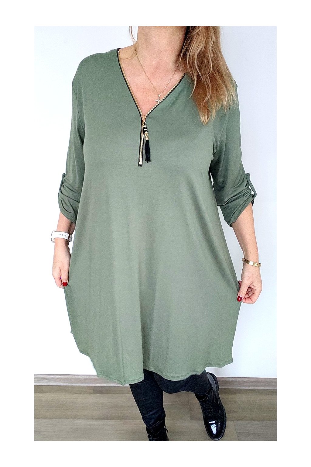 Dámská pružá tunika se zlatým zipem