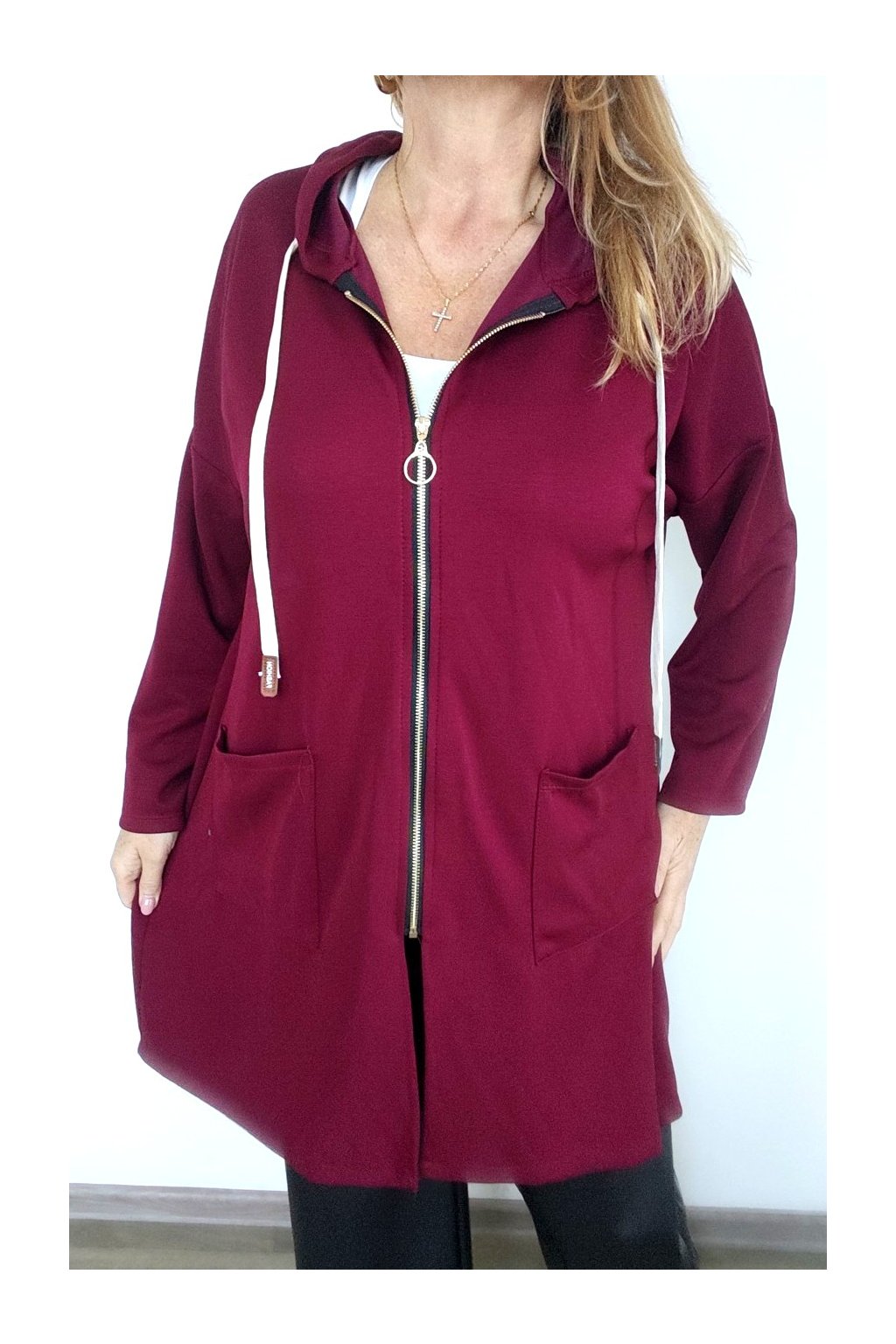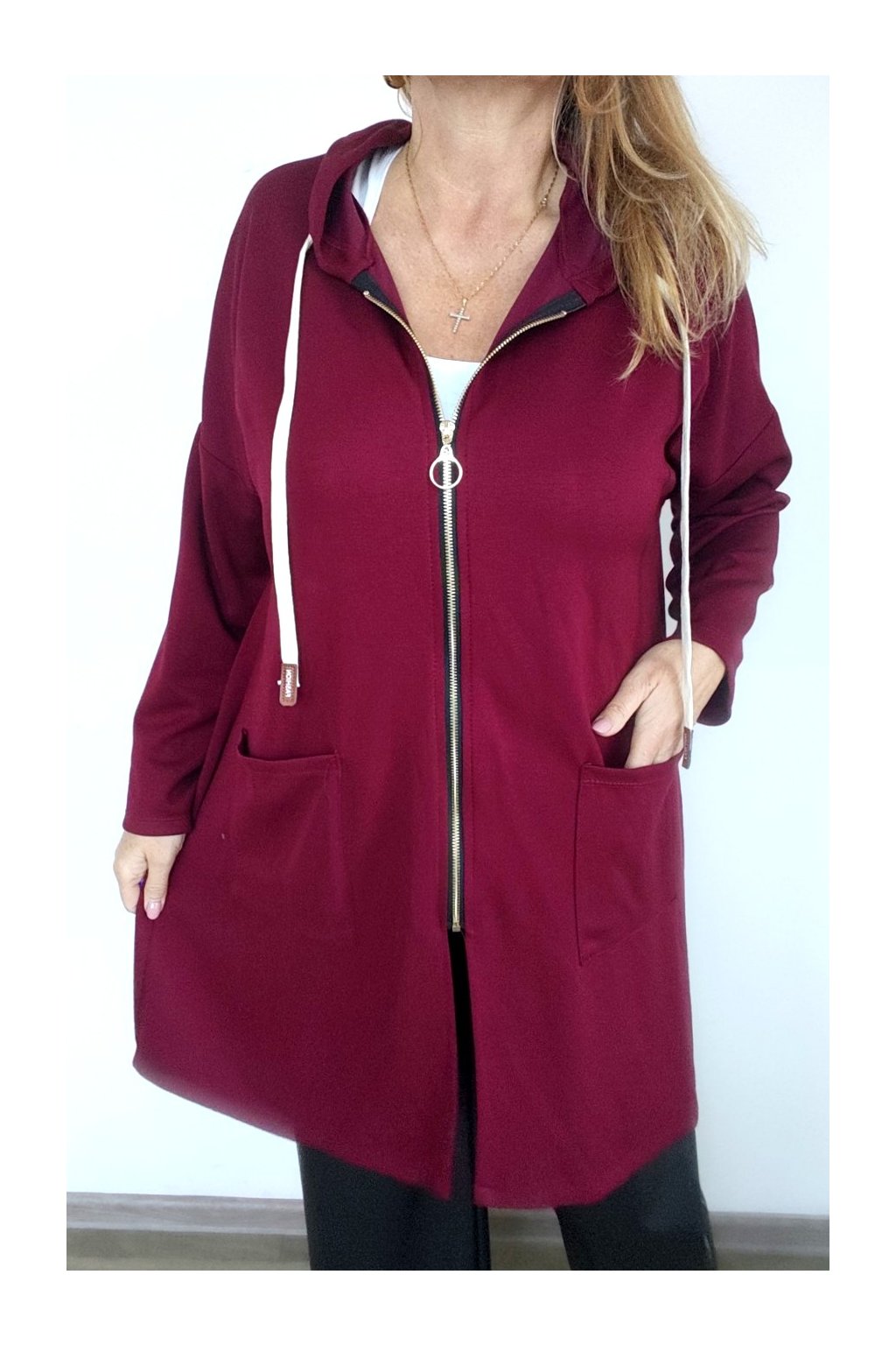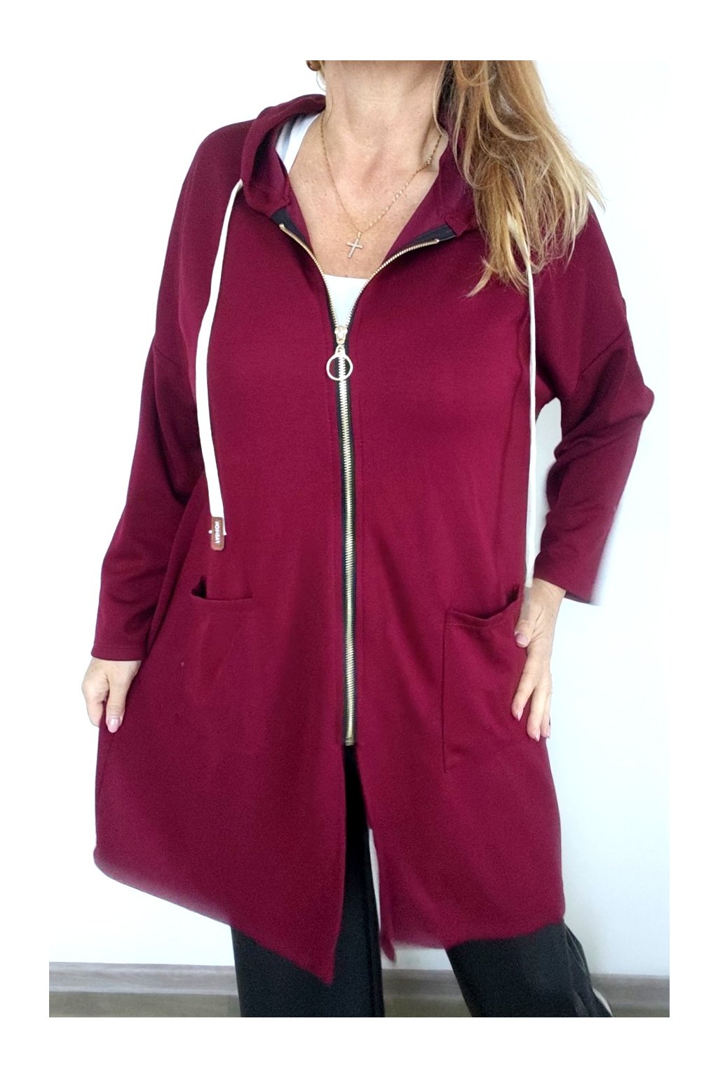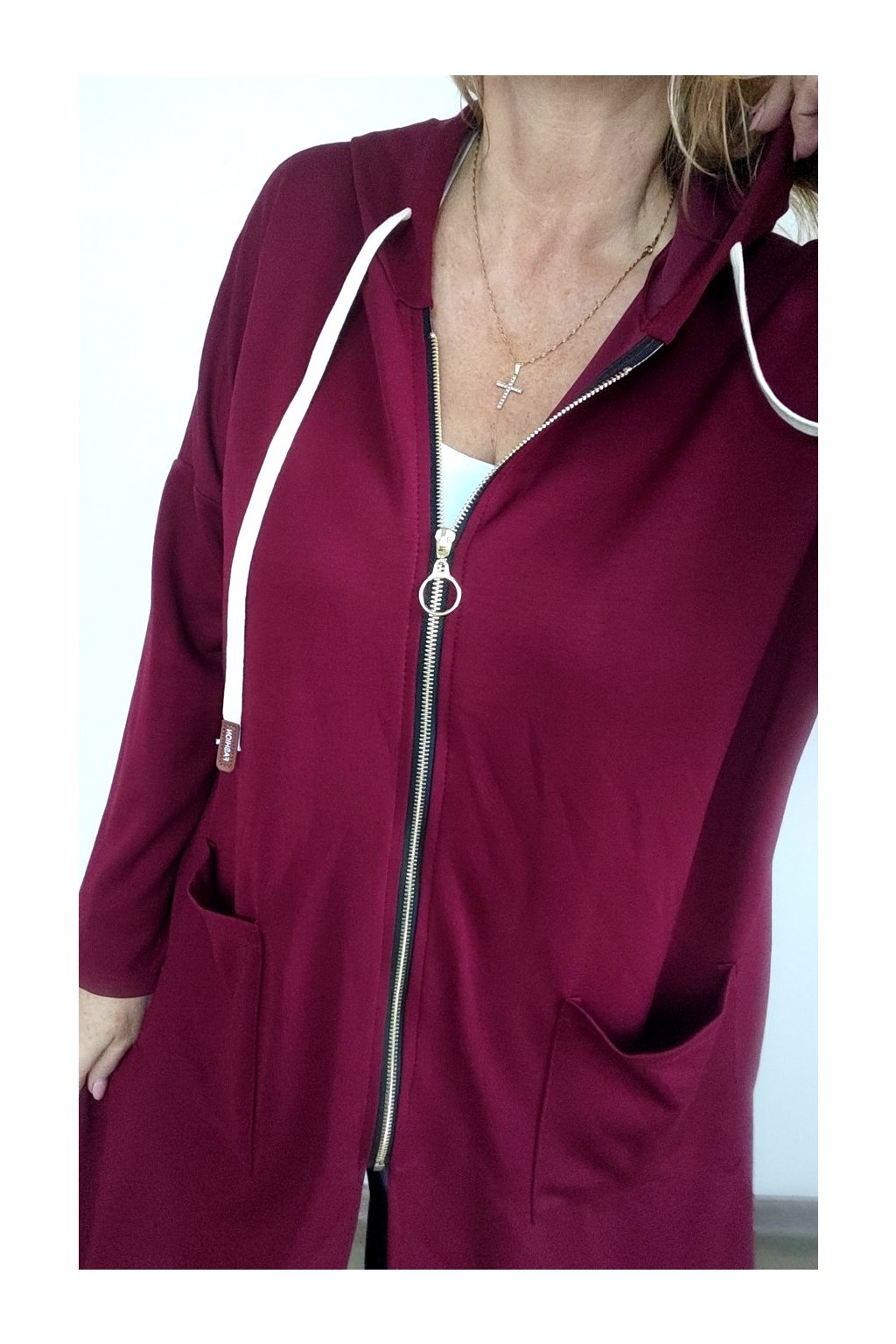 Kapuce, zlatý zip, kapsy, šňůrka